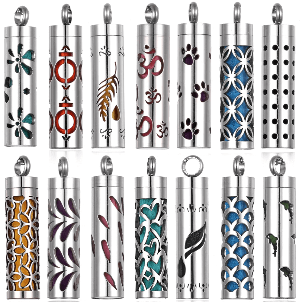 Kit com 10 colares difusores aromaterapia cilíndrico linha premium todo em aço inoxidável 316l, ideal para quem quer fazer um dinheirinho extra com a vendas desses produtos, material de excelente qualidade que não perderá a cor com o tempo pois se trata de um produto todo em aço inoxidável, cada colar acompanha 10 feltros (esponjinhas).