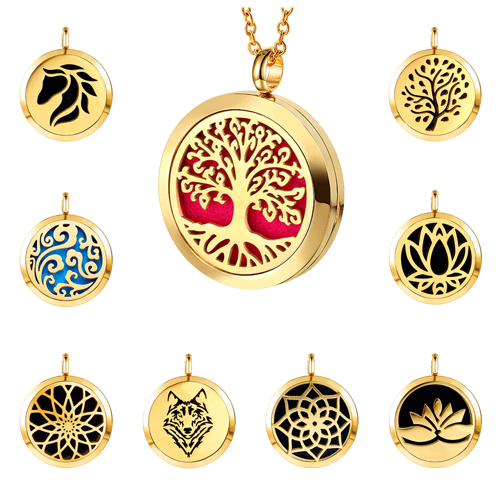 Kit com 30 colares difusores aromaterapia dourado nos tamanhos 20mm 25mm e 30mm linha premium todo em aço inoxidável 316l, ideal para quem quer fazer um dinheirinho extra com a vendas desses produtos, material de excelente qualidade que não perderá a cor com o tempo pois se trata de um produto todo em aço inoxidável, cada colar acompanha 10 feltros (esponjinhas).